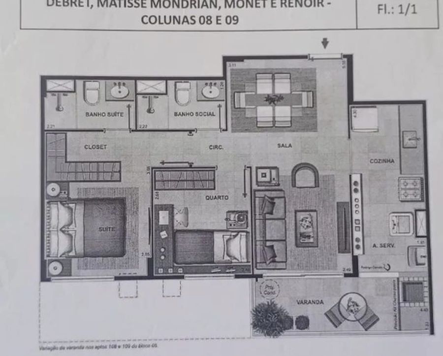 O imóvel possui planta funcional e bem distribuída, com 2 quartos (sendo 1 suíte) e 2 banheiros. A unidade é semimobiliada, o que reduz custos iniciais e agiliza a ocupação. A sala integrada à varanda proporciona ótima ventilação e iluminação natural, criando um ambiente confortável e arejado. O apartamento conta ainda com 1 vaga de garagem.