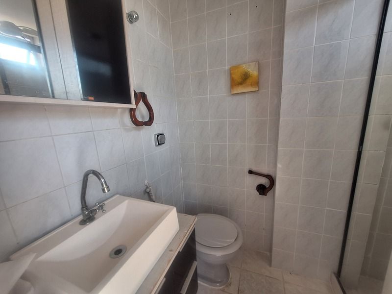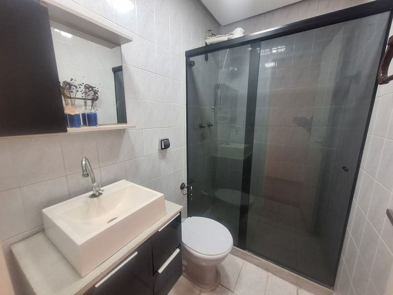Banheiro social com armário e box blindex